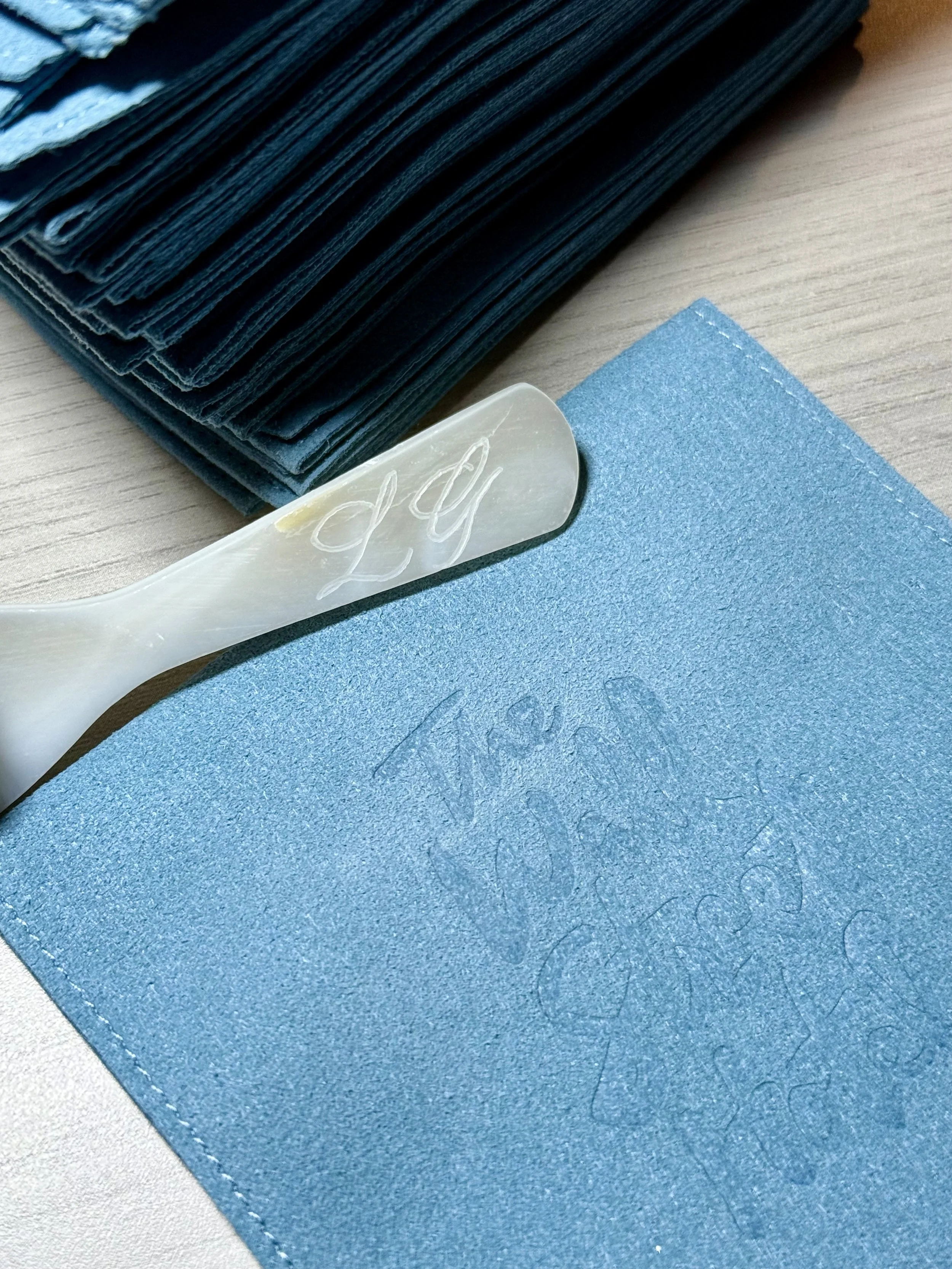 If you’re interested in bulk personalization, PR gifting, influencer mailers, or large-volume engraving completed off-site, explore my in-studio custom calligraphy services here.